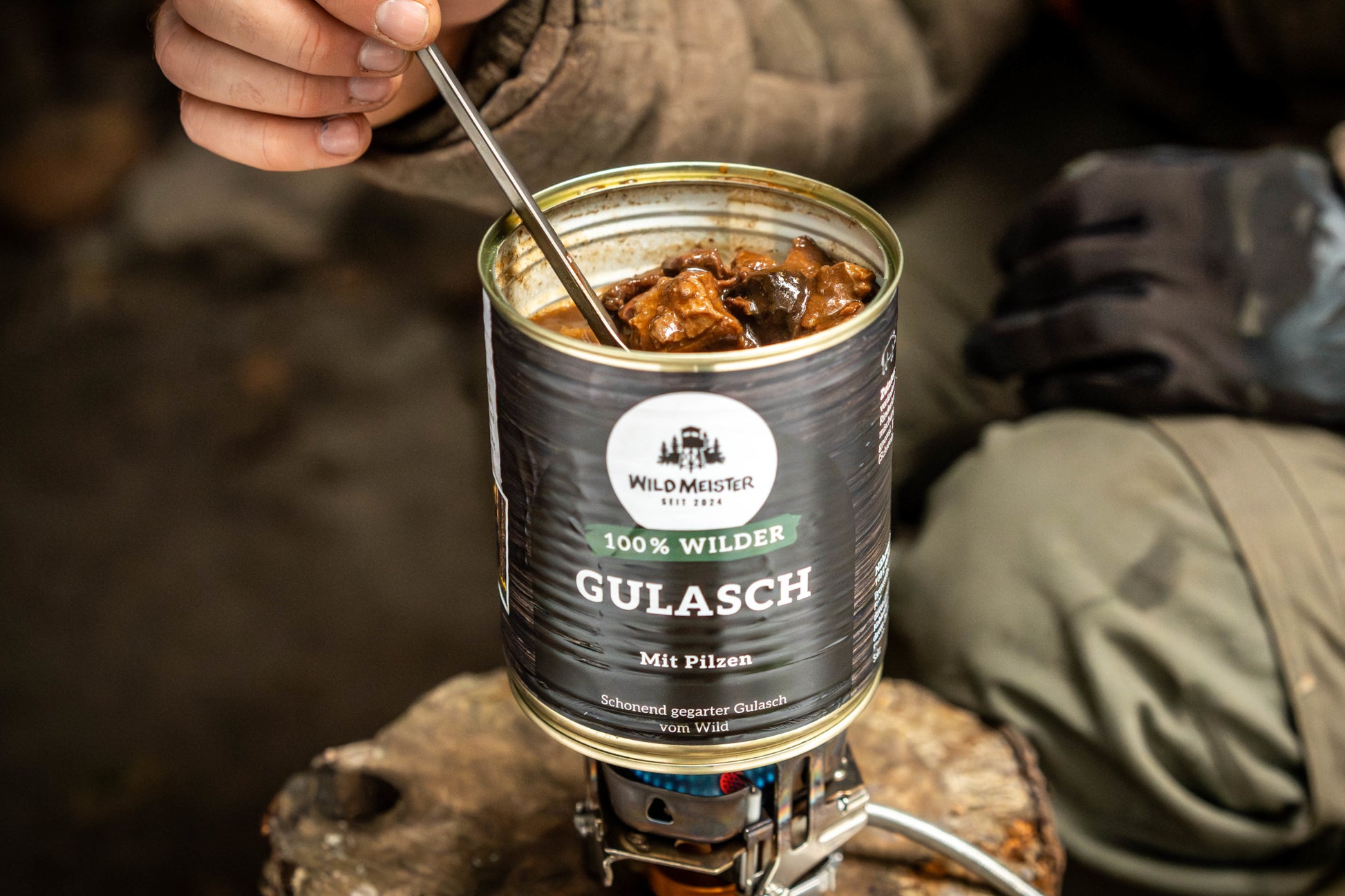 Bock auf was richtig Wildes? Unsere Wildprodukte in der 800 g Dose sind der absolute Gamechanger, wenn es um echten Wildgeschmack geht. Unser Wildgulasch - 100 % regionales Wildfleisch, 100 % pure Natur. Eine einzigartige Gewürzmischung und eine Zubereitung, die das Wildfleisch und die Pilze perfekt in Szene setzt. Schnell, easy und trotzdem mega lecker – perfekt für alle, die Qualität und Regionalität zu schätzen wissen. Mach Schluss mit dem Standard und hol dir ein Stück Natur auf den Teller.