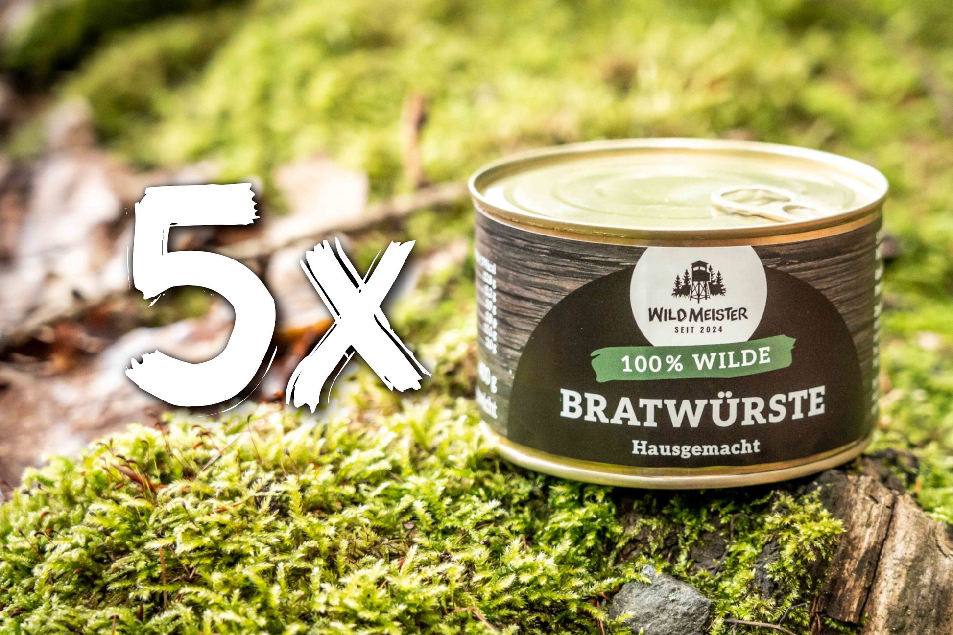 Die volle Portion wilde Bratwurst! In diesem 5er Sparpaket bekommst du unsere wilden Bratwürste zum Vorteilspreis - 100 % regionales Wildfleisch, 100 % pure Natur.