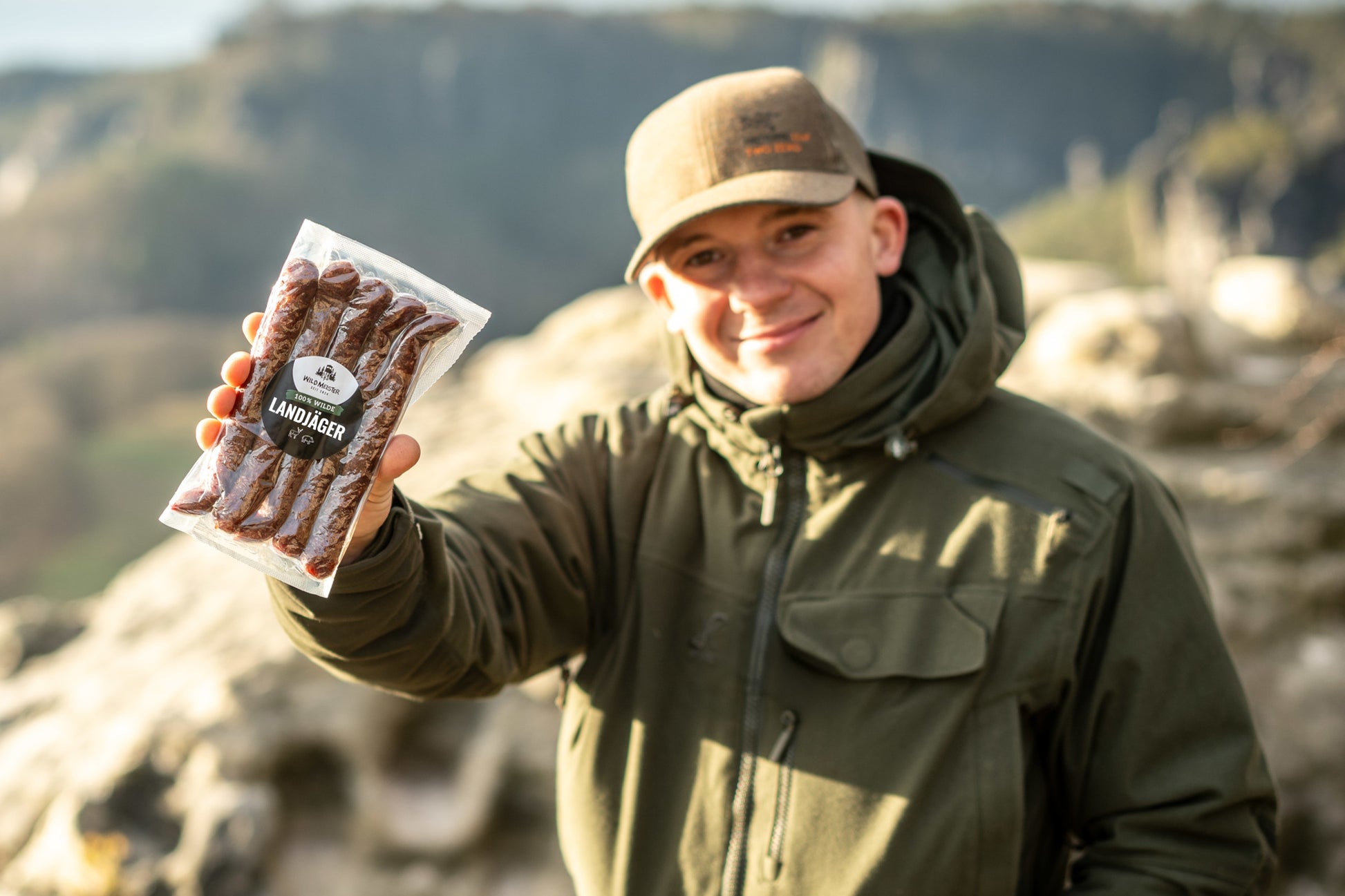 Die volle Portion unserer wilden Landjäger! In diesem Sparpaket bekommst du 5 Packungen mit jeweils 5 Landjägern zum Vorteilspreis - 100 % regionales Wildfleisch, 100 % pure Natur.